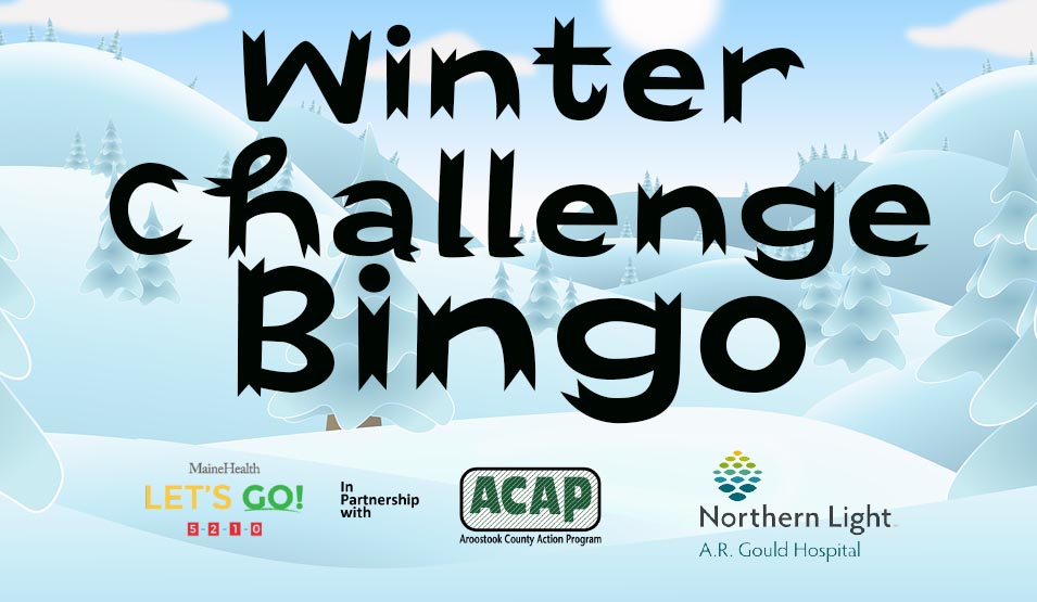 Join Aroostook County Action Program and Northern Light Health AR Gould Hospital for Winter Challenge Bingo! How many activities can you and your family do? Get a bingo in any direction (vertical, horizontal or diagonal) to be entered to win the grand prize of a $50 gift card to Bike Board and Ski. Everyone that enters gets a prize! Cross off the activity as you or your family completes it and don't forget to take some pictures.